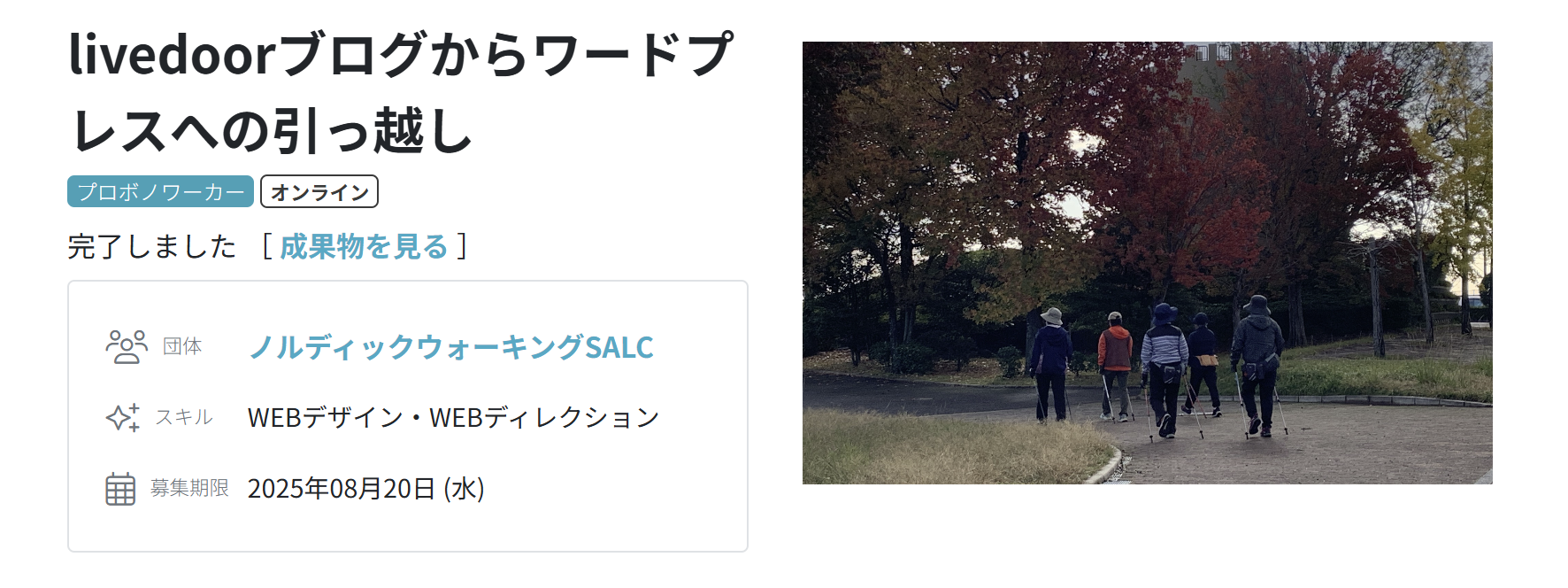 ブログは充実してきたのですが使っていたライブドアブログは広告が多く、会員から「特にスマホでは見づらい」と言われていました。今年の1月に団体名を変更したこともあり、WordPressに移行しようとサーバー契約まで進めていたのですが、忙しさもあって手を付けられないまま夏になってしまいました。