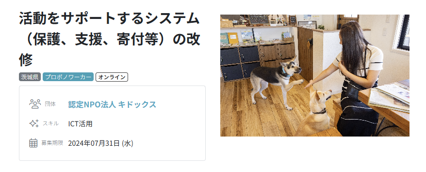 支援募集記事:活動をサポートするシステム(保護、支援、寄付等)の改修