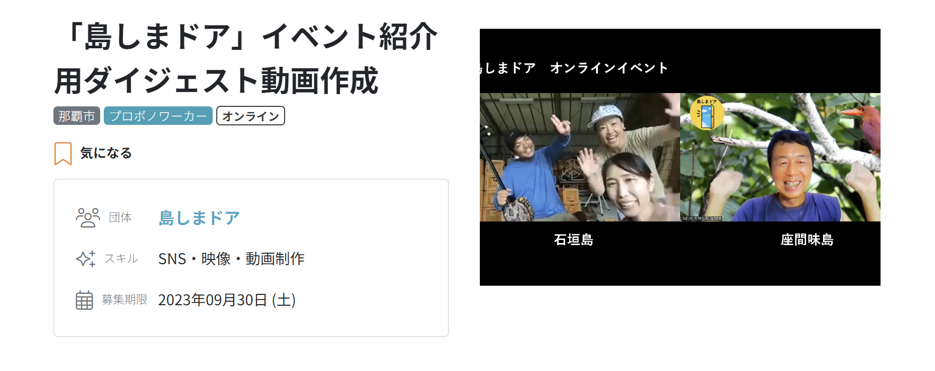 支援募集記事:「島しまドア」イベント紹介用ダイジェスト動画作成