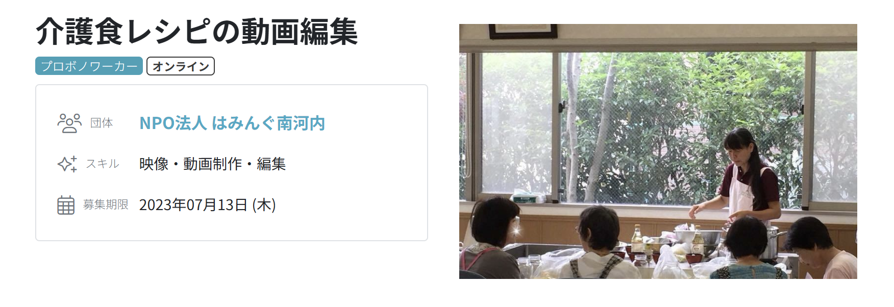 この課題を解決するために、2023年の夏に「介護職レシピの動画編集」のプロジェクトを立ち上げて募集することにしました。