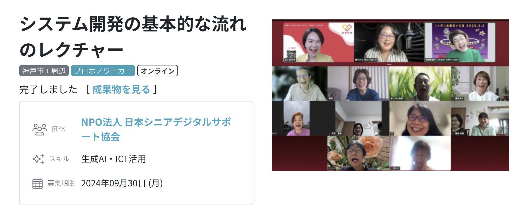 GRANTで最初に取り組んだのは2024年です。NPO法人日本シニアデジタルサポート協会さんの「システム開発の基本的な流れのレクチャー」のプロジェクトでした。